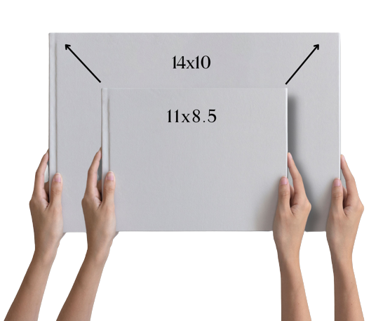 The bigger size will better feature all your favorite photos and creates a more immersive experience that will bring you back to your wedding.